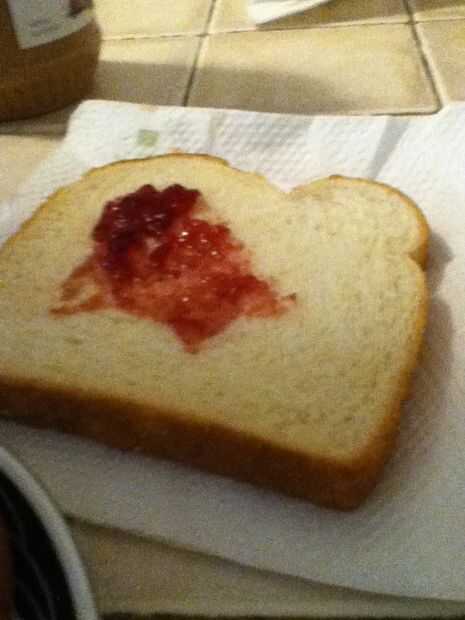 Ah!  Buena viejo PB & J!!!!!!   Este sándwich será mi favorita para siempre!Paso 1: ingredientes 2 piezas de pan blanco-Mantequilla de maní-jaleaPaso 2: herramientas -Cuchillo de mantequilla-tal vez una cuchara para sacar la jaleaPaso 3: difusión sep