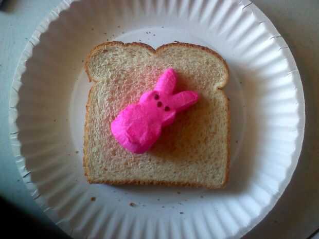y por supuesto la deliciosa estrella de nuestro sándwich! Nota: He encontrado que la variedad de conejito de posicionamiento sobre el pan en un ángulo en el centro da la mejor cobertura. Sin embargo, sólo podría poner dos en su sandwich si así lo quieren.