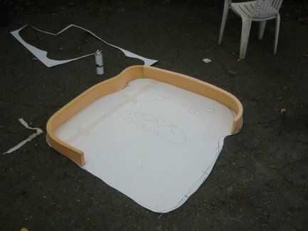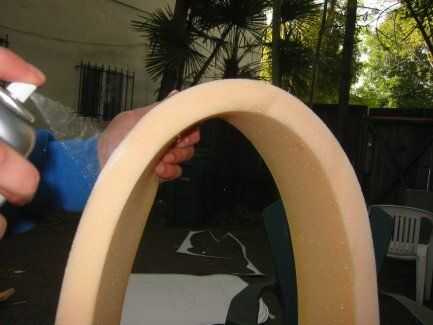 Ahora podemos agregar nuestra corteza. Tomar algunas de nuestra hoja de espuma gruesa de 1 1/2 pulgada y cortar tiras largas que son aproximadamente 5 pulgadas de alto. Usted necesitará un carver de Turquía eléctrica realmente conseguir este trabajo bien hecho. Entonces usando spray pegamento fije nuestra costra de espuma hasta el borde exterior de la cartulina. Adhesivo en aerosol es un pegamento de contacto, así que vas a tener que rociar el cartón y la espuma. Deje que se seque lo suficiente para obtener pegajosa, y luego lo pegan.