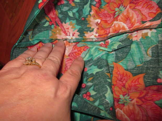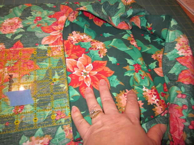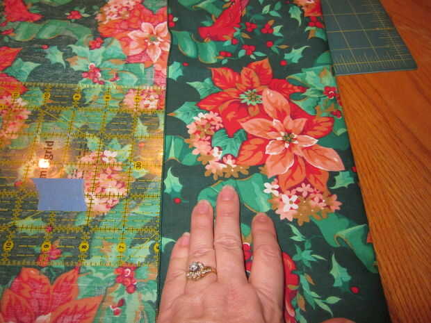 Márquelo si desea, o simplemente pin como vas. Coloqué mis pins cerca del borde doblado. Asegúrese de que prender solo a través de dos capas de tela, no cuatro! Sólo levantó a la tela a ambos lados de mi regla y lo cubrió. Como dije, yo tipo de improvisar. Si usted está haciendo una amplia bolsa, deslice la regla hacia abajo y repita según sea necesario.
