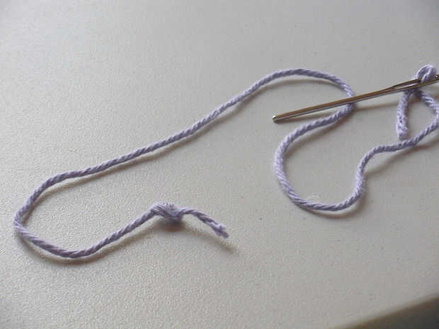 Usted necesitará una aguja roscada. Asegúrese de que el hilo no es que la distancia entre el corazón y la mano cuando el brazo está extendido. De esa manera puede tire del hilo a través de su hilo de rosca en una sola pasada. ¡Vamos!