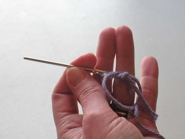 Sin pellizcar demasiado firmemente, deslice el paquete de hilo de la aguja. Continúe tirando del nudo hacia el final de su rosca. Básicamente, le vas tirando el nudo y la aguja de uno con el otro.