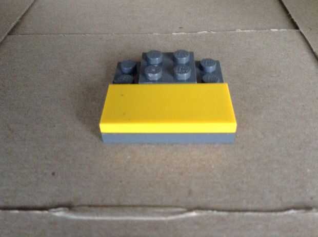 Tomar su ladrillo de 4 x 4 y tapa amarilla y sus 3 ladrillos rayas y hacerlo.