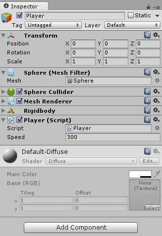 Ir al panel Inspector para el jugador y buscar en la escritura del movimiento que acaba de crear. Debe haber una caja para la variable pública, velocidad. Puede cambiar el valor de variables públicas mediante el Inspector.
