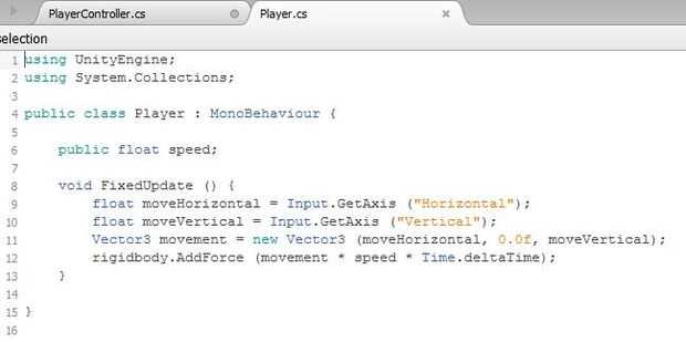 Ya debe haber dos secciones incluidas en el código por defecto: void iniciar () y anular (actualización). Arranca funciona tan pronto como el objeto entra en el juego y actualizar funciona continuamente mientras el objeto está en el juego. Vamos a añadir un tercero, llamado FixedUpdate para manejar protocolos relacionados con la física. Debe verse así: