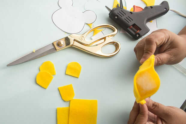 Pega la parte de atrás de la cara con la parte de adelante. Dejando una abertura para el relleno debajo. Deja secar y rellena con el algodón.