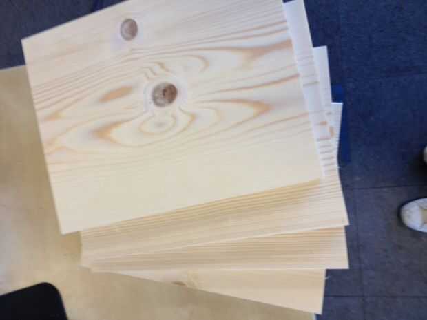 Cortar la madera. Empecé con un pino tablero 1 "x 10" x 8' y fue capaz de cortar 8 tablas 1 "x 10" x 12 ". Nota que pino es extremadamente suave y se abolla. No es ideal para una tabla de cortar, pero no corte se hará en estas placas simples, y va forrados con papel siempre que sea utilizado.