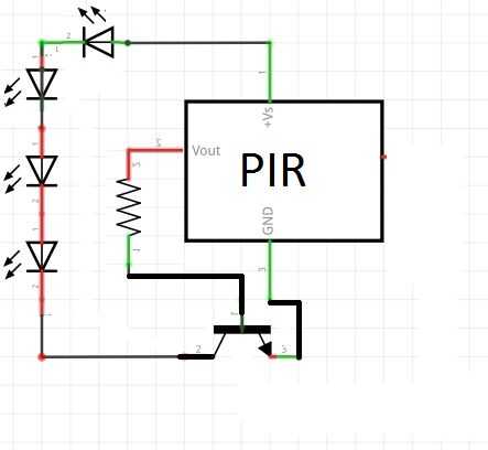 Ahora tiene 1k entre transistor y pir. por el cual reduce el voltaje del transistor de deserción.