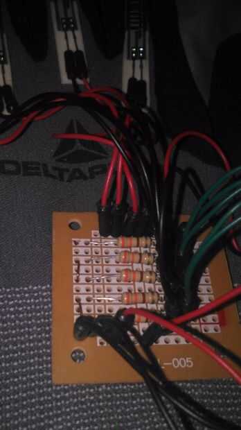 2. Un jumper negro con una resistencia y un Jersey verde de la soldadura como salida para el mismo lado de la resistencia (entre puente negro y resistencia)