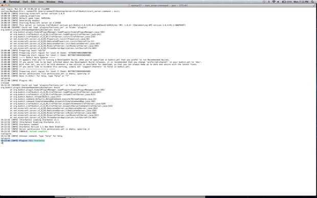Otra vez a arrancar el servidor. Cuando usted consigue encendido, tipo /plugins en el chat. Si ves el nombre del plugin que descargó en el chat, luego gran! ¡ Funciona! Si no, el plugin es con fuera de fecha o para descargar otros plugins para instalarlo. Hecho! (La línea que resalté dice Plugins (1): Stargates)
