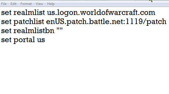 Vaya al directorio de WoW. Luego ir a datos/enUS (o enGB). Busque un archivo llamado realmlist.wtf. Aparecerá una pequeña ventana diciendo que no se puede abrir. El círculo pequeño al lado de "Seleccionar un programa de una lista de programas instalados", haga clic en Aceptar. Encontrar "Bloc de notas" y haga clic en Aceptar. ADVERTENCIA: SI QUIERES JUGAR WOW NORMAL OTRA VEZ, ASEGÚRESE DE QUE COPIAR Y GUARDAR CUÁL ES EN EL REALMLIST. WTF EN UN DOCUMENTO!! Después de copiar el contenido en el realmlist.wtf en un documento (procesador de textos, Bloc de notas, nada de eso) y guardarlo, borrar todo y escriba en esto: "set realmlist 127.0.0.1" guardarlo. Asegúrese de que guardarlo como un archivo .wtf, no es un archivo txt.
