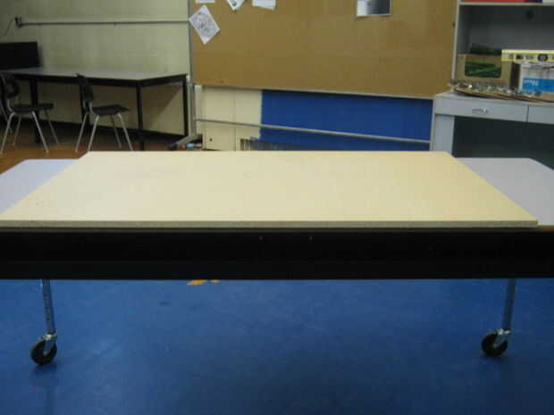 Empezar por conseguir un pedazo de madera contrachapada. Coloque la madera en la mesa. Trate de alinear la madera con los bordes de la tabla ya que hace más fácil. Madera contrachapada es generalmente pesada así que ten cuidado al poner sobre la mesa. Asegúrese de que nadie que no se supone que hay en el camino.