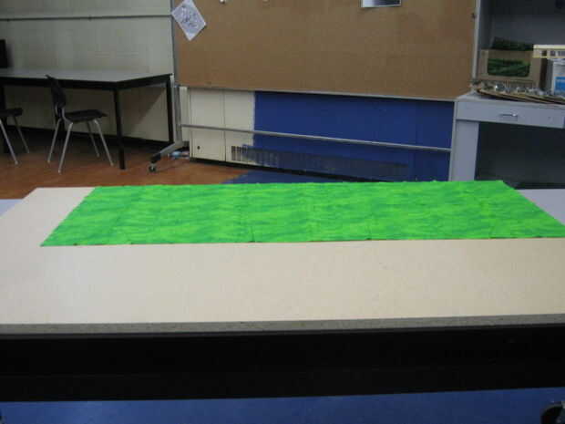 Coloque una tira de tela sobre la madera contrachapada, alineando los bordes. Tejido, como el de la foto, se puede comprar en Walmart para barato. Asegúrese de comprobar rasgaduras o roturas en la tela.