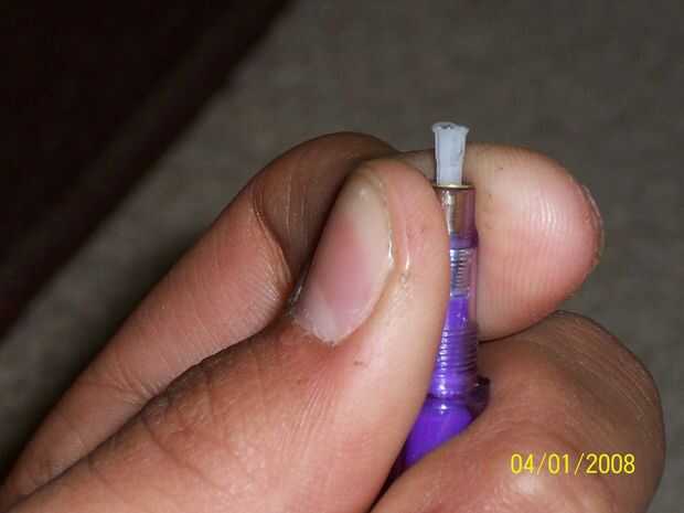 en la punta del lápiz después de tomar la tapa, debería ver un pequeño trozo de metal. agarrar con el pulgar y el dedo índice y levante la parte de goma de borrar. debe salir un pedazo de plástico.