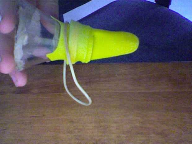 Tomar las gomas y envuélvalos alrededor de justo debajo de la boca de la botella para asegurarse de que el dedo de látex es en real ajustado.