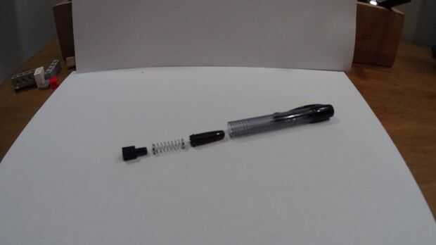 Paso 1: Herramientas y de suministro Pegamento caliente, pluma, tornillo apretones, lápiz, arte cuchillo o tijeras, cartón, butano/litro líquido, más ligero, Bug pistola, nivel rampa de lanzamientoPaso 2: Deconstruyendo su pluma Tome las abrazaderas