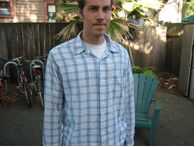 Conseguir una camisa suelta en buena voluntad. He encontrado un plaid, botón color de la luz número es mejor. Necesitarás cortar con cuidado la camiseta donde la sangre está rodando hacia fuera. Una pequeña "X" en el patrón de la camisa será difícil de ver en el vídeo.