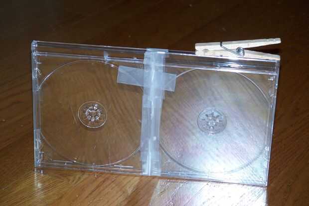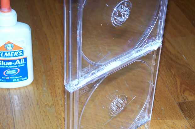 Ahora Aplique pegamento en el borde de la caja del cd 1 y pegan tanto. Una vez que se seque, pegue la pinza hacia arriba, como se muestra en la imagen.
