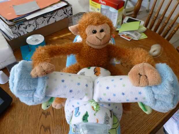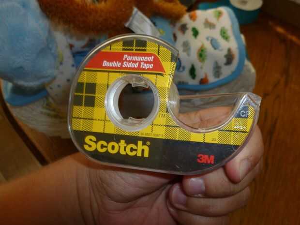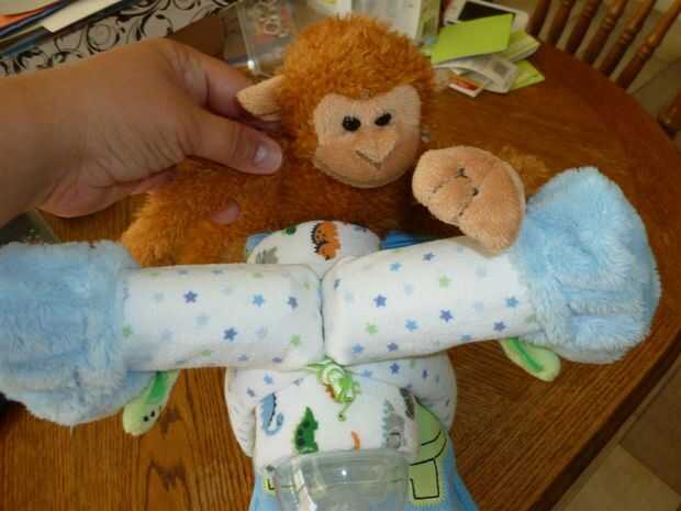 Para hacer las manos de mono permanecer en el lugar, utiliza unos trozos de cinta de doble cara y los colocó en la parte inferior de cada mano del mono.