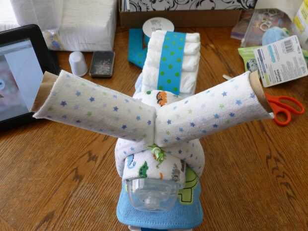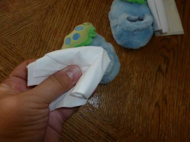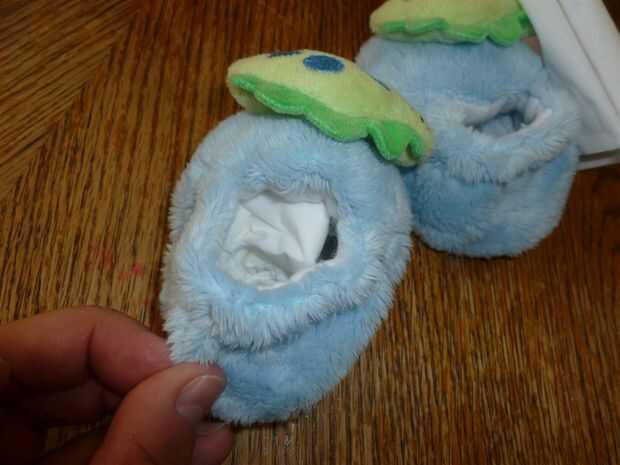 Tomando papel rasgado o un pedazo de toalla de papel, rellenar el interior de los patucos o calcetines.