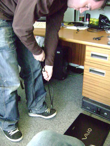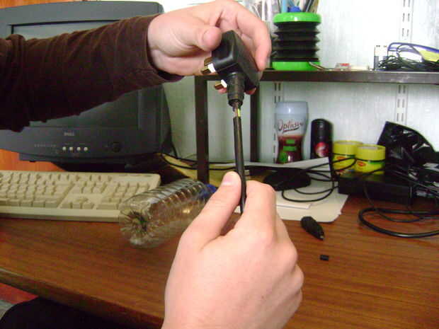 Soporte del enchufe (asegúrate de que llevas los zapatos) y tire del aislamiento. Usted debe comenzar a ver los cables pelados al enchufe final, y el aislamiento debe ser vaciado.
