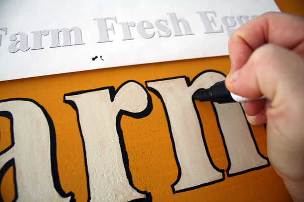 Después de que esté completamente seca, la pluma de punta por medio de la pintura del mismo color y añadir a la sombra caída, utilizando la impresión como una referencia visual para donde caen para cada letra.