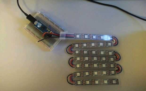 para configurar la matriz de LED. Como usted soldar entre sí sus tiras de LED, asegúrese de tener en cuenta que vas a tener que coincidir con la configuración física de tu LED y adruino con lo que ha configurado en el código.