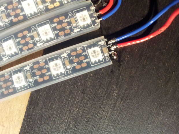 Zig-zag se realiza cortando la tira de LED en pedazos, volcando cada tira del otro y para soldar juntos en los lados. Ver las fotos para ver ejemplos.