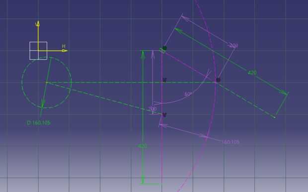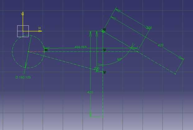 6. el valor resultante, 160,105 mm será el diámetro de la manivela. Debe fijarse el punto centro de la manivela. Haga clic derecho sobre el punto > desteñimiento * objeto > fijar
