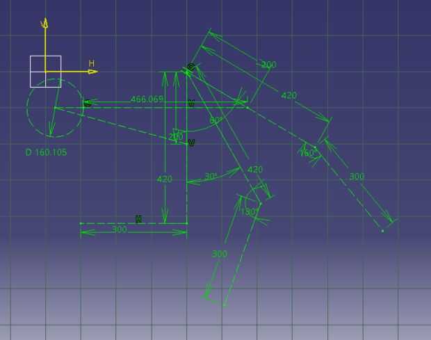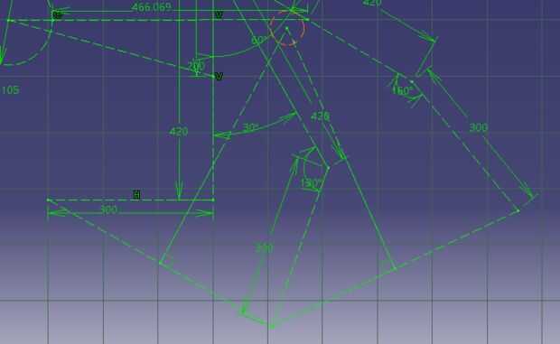 1. dibuje otro 30deg thigh(420mm) del muslo vertical.