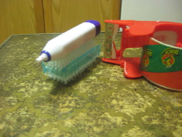 Nota: Si usted consigue un cepillo de uñas como el mío, puede romper o incluso incline el cuerpo del cepillo de dientes mientras que usted está solicitando la cinta. Esto está bien. Incluso puede encontrar que funciona un poco mejor ya que tendrás más vibración contra el plástico en lugar de amortiguado por las cerdas.