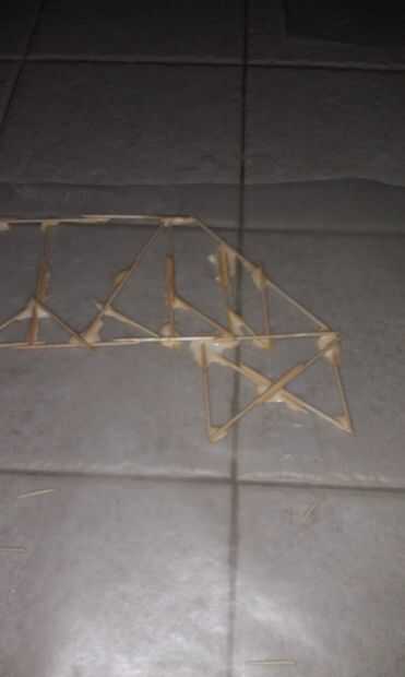Poner palillos en dibujos y pegamento en lugar asegúrese de que se superpongan palillos de dientes.