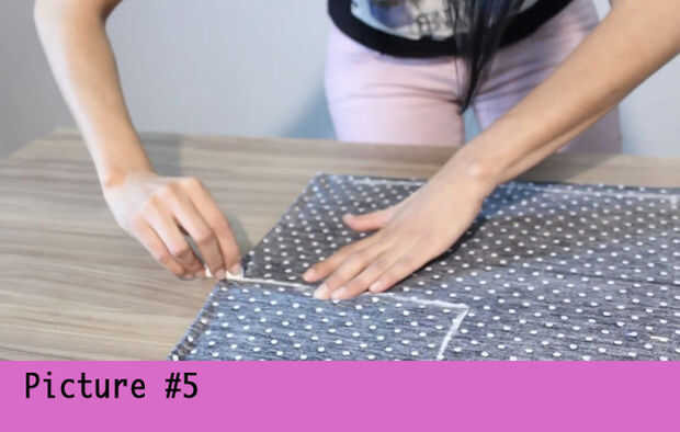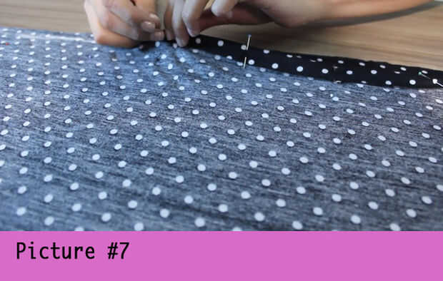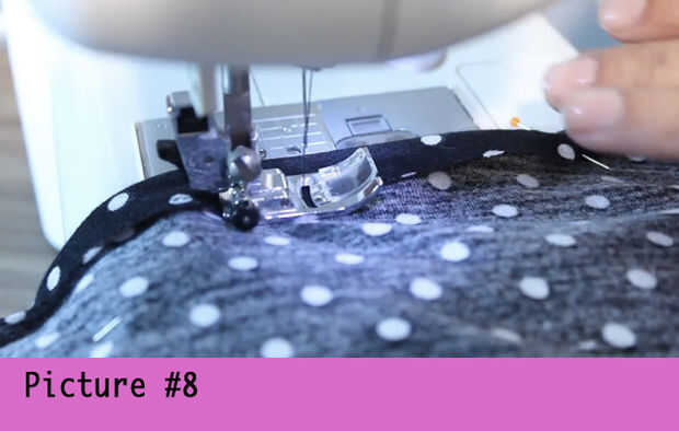 Cuadro #7 y cuadro #8: sobre el escote hacer un dobladillo, use los alfileres. Comience a coser, con mucho cuidado.