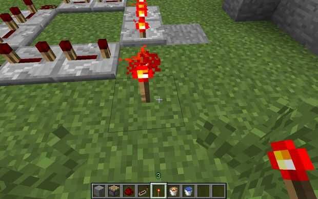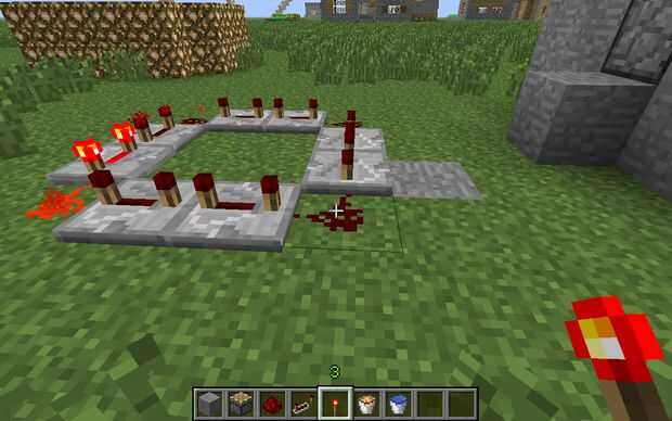* poner la antorcha abajo a la derecha al lado de la redstone que la rotura la antorcha inmediatamente la luz de los repetidores se debe mover en un patrón
