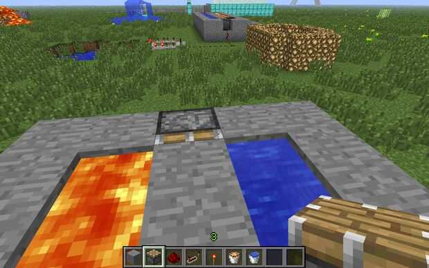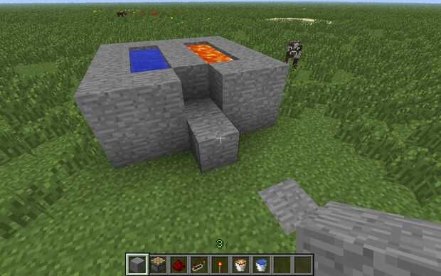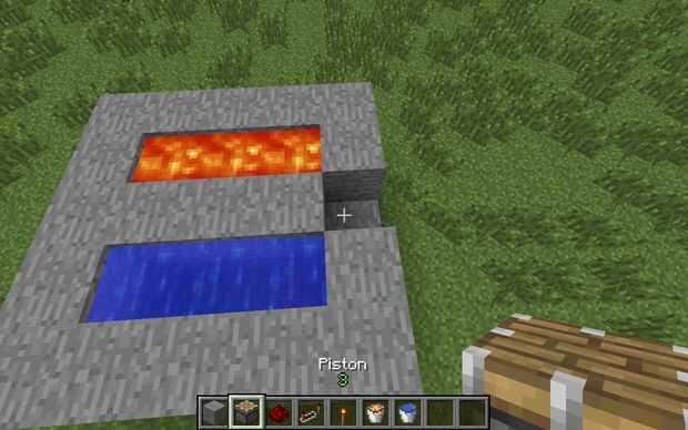 * en uno de lo redstone lados hacen un cable que vaya hasta el pistón el pistón debe ir entonces parar y así sucesivamente adoquín piedra debe salir si hace derecho