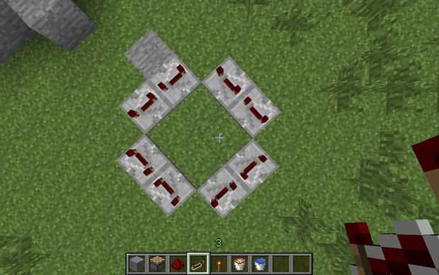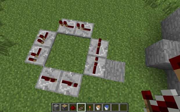 * hacer una caja con redstone repeters pero no en los lados (ver en foto)