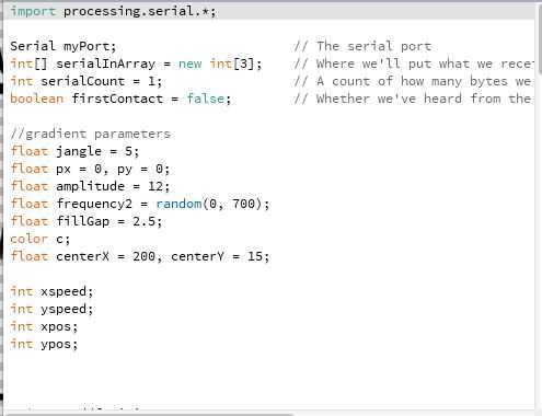 En la parte inferior de la mitad de la serie llamada código de la respuesta, comentada con "/ /" usted encontrará el código de procesamiento necesario para conectar los dos programas, copiar y pegar este código en la ventana de procesamiento. Ahora comenzaremos a trabajar con este código para que se aplica a lo que queremos hacer con él.