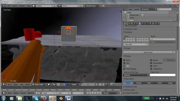Ahora vamos a añadir la primera cámara fotográfica de la persona y la pistola. Eliminar la cámara que estaba en la escena y añadir otro. Pulse 'Alt R' para borrar sus rotaciones. Luego gire en el eje x por 90 grados. Después de terminar la escala hacia abajo y colocarlo en la cara de los cubos. Listo el cubo como un padre a la cámara. Listo el cubo a modo de marco de alambre por el editor de objetos y seleccionar cable. Para agregar el arma que desea añadir como un objeto. Luego la escala hacia abajo y moverlo a la derecha de la cámara. Selecciona el cubo y pulsa 'H' para ocultarla. Ahora cambiar la vista a vista de cámara y acabado de la escopeta de posicionamiento. Ahora hacer la cámara un padre a la escopeta. Añadir un eje vacío y hacer que un niño de la cámara.