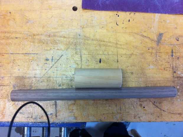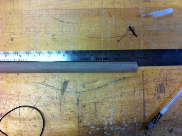 En primer lugar usted necesita medir la madera que vas a cortar. 1 mide 11 pulgadas de la espiga que vas a utilizar como un eje y haga una marca. 2. Mida 3 pulgadas de la clavija más grande que vas a utilizar como una cabeza de mazo. 3 cortar las piezas que miden