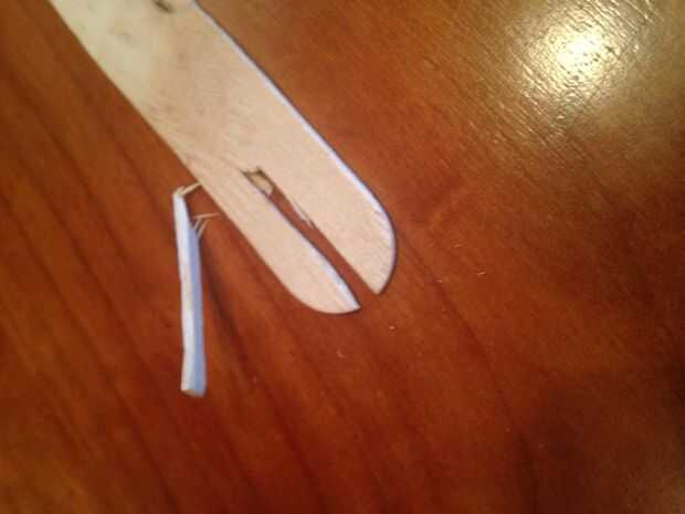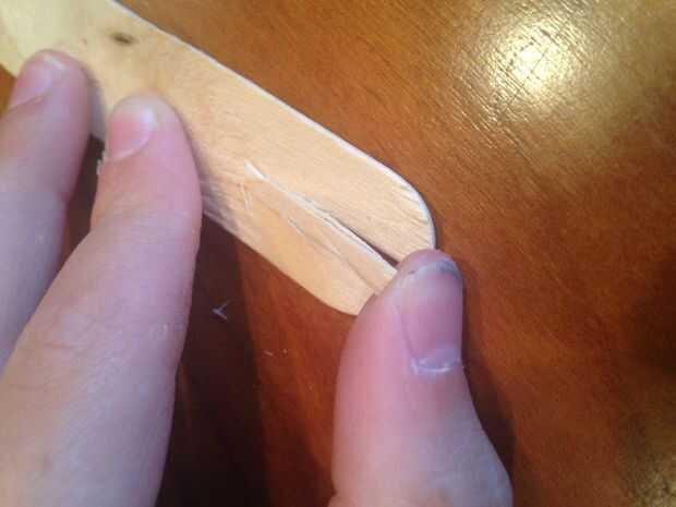 Primero, corte un pequeño guión en un extremo de la palanca de paleta.