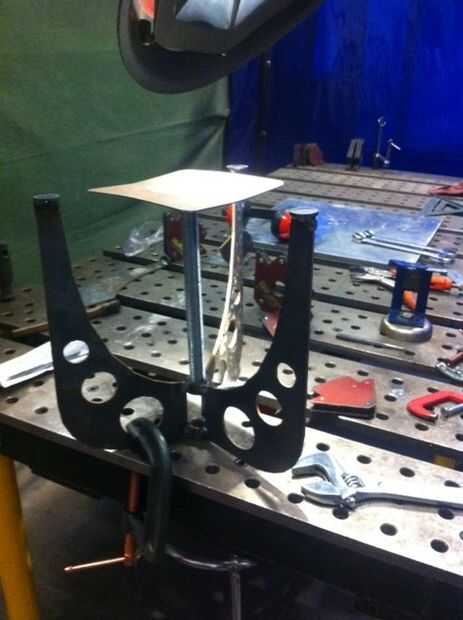 Soldar la tuerca pasada al centro de la plataforma para que pueda prestar la parte superior de la materia fecal más adelante.