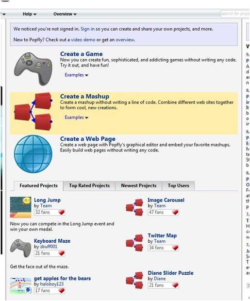 Ir a Popfly.com y haga clic en crean un juego, debe pedirle que inicie sesión con una cuenta de hotmail. Si no tienes uno tiene que hacer uno y volver. También necesita instalar microsoft silverlight, por lo que su equipo tiene que ser algo rápido.