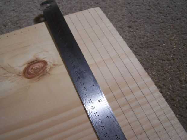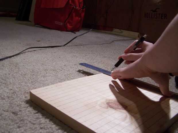 Lo primero que quieres hacer es medir cuánta madera tiene y marcar una cuadrícula. Prueba y centro de su red para que sus marcas se centrarán así. Mi grid fue una media pulgada por media pulgada.