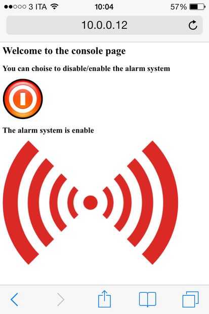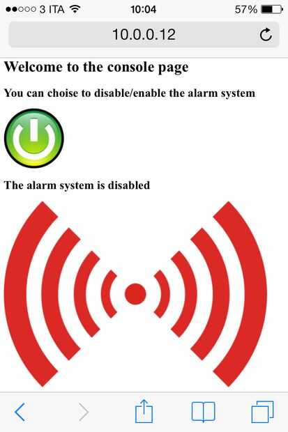 En la página protegida del servidor web, puede activar y desactivar el sistema de alarma pulsando el botón central, que cambiará de color dependiendo del estado.