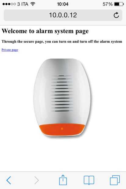 En cuanto a los sistemas de alarma tradicional, esto también es capaz de desactivar, por ejemplo estamos en la casa y es normal que hay movimiento! Para ello, se realizó un servidor web dentro de la estación de tren, de la cual usted puede administrar el sistema. Escribiendo la dirección IP del servidor, abrirá una página web protegida por un nombre de usuario y una contraseña. En el caso de este código, las credenciales son: