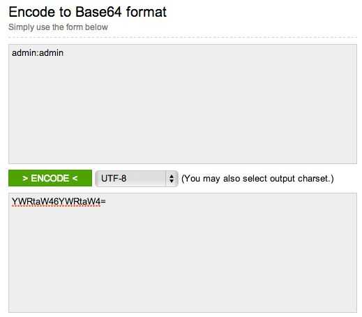 Introduzca en e nomeutente:password "codificar" y el resultado será bm9tZXV0ZW50ZTpwYXNzd29yZA ==.