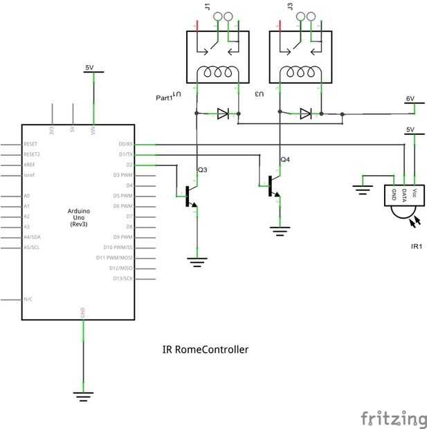 El transistor actúa como interruptor cuando un alto es enviar a la base de conexión del circuito de alimentación de 6V para el módulo de relés.