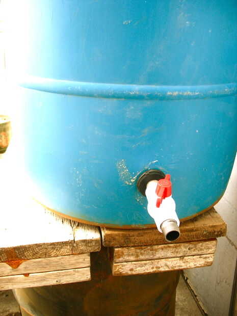 Un barril y si un barril de lluvia para este fin no está accesible un zafacón u otro tipo de barril puede transformarse también en esto. Utilizamos un sistema de dos barril, pero esto también puede hacerse con un barril.