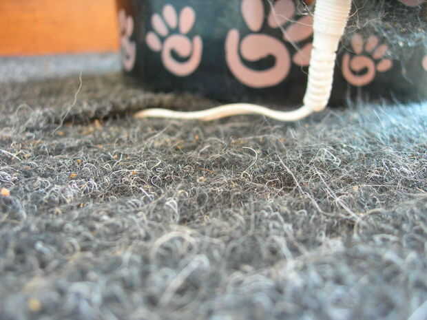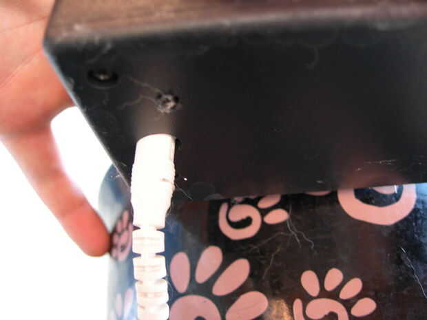 Luego corte una raja en la estera color carbón y funcionó el cable de alimentación debajo por razones de seguridad.