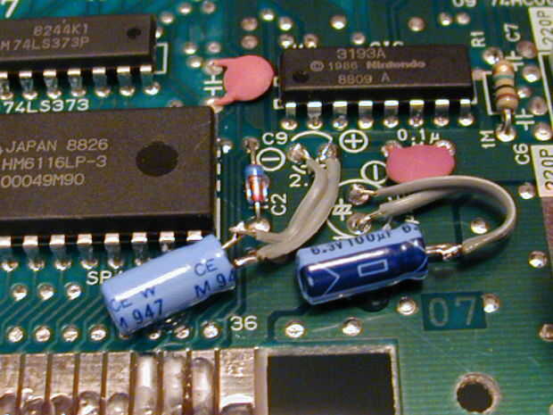 Reubicación de condensadores es una tarea fácil, pero puede ser bastante aburrido. Por suerte, la NES tiene sólo 3.